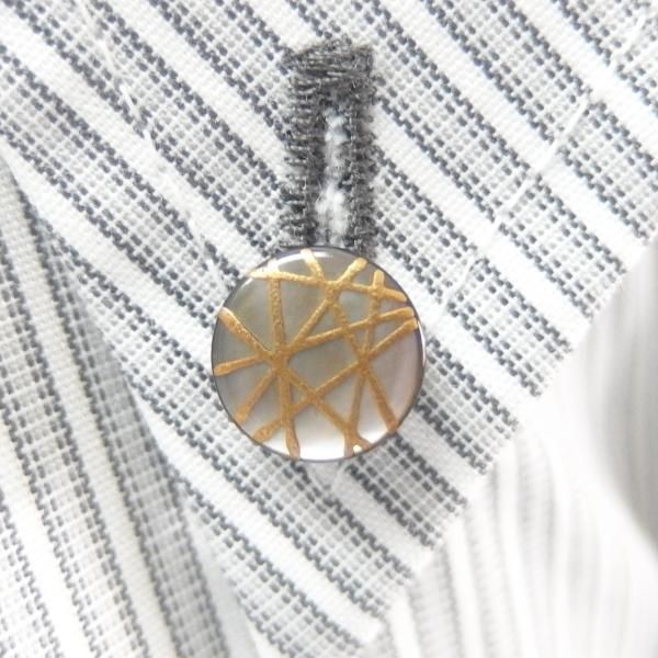 黒蝶貝に糸巻きの蒔絵が描かれており、襟元にアクセント。