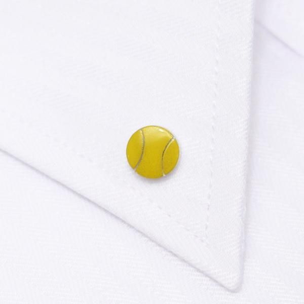 白蝶貝にテニスボールが描かれており、襟元に遊び心を演出。