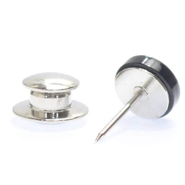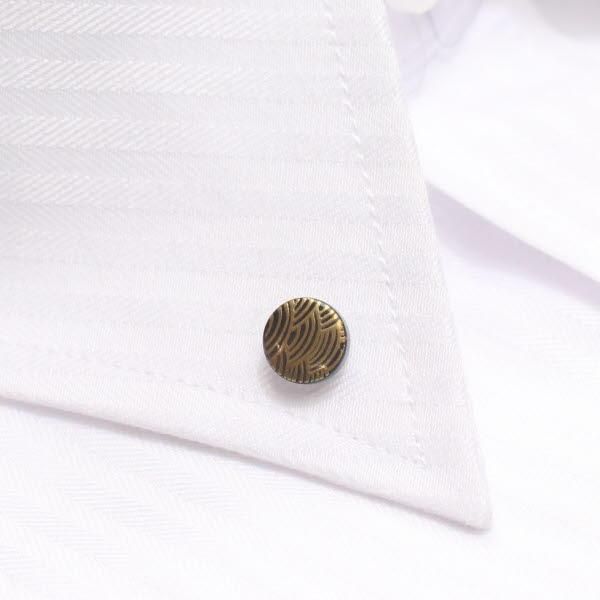 ボタンダウンシャツの衿のボタンにボタンダウンピアスをさして、キャッチで留めるといつものシャツも格上げ仕様に!!
