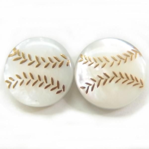 【受注生産品】ベースボール・白蝶貝のボタンダウンピアス