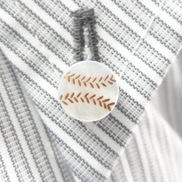 白蝶貝にベースボールが描かれており、襟元に遊び心を演出。
