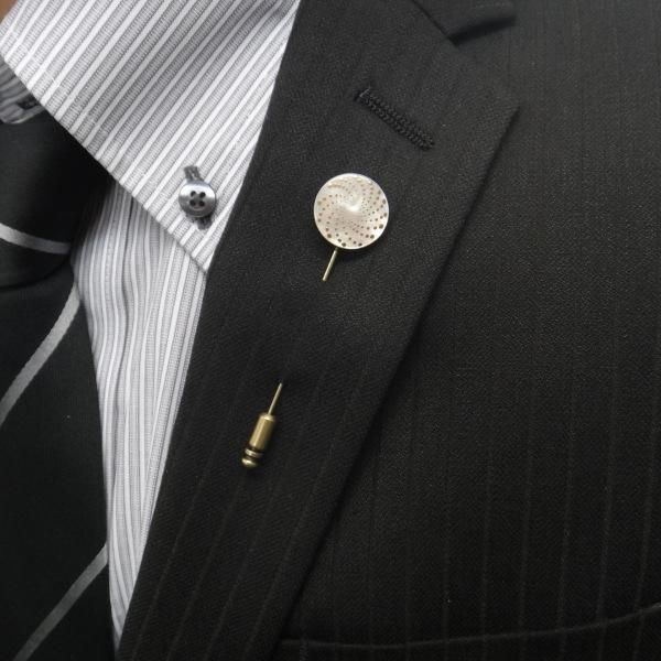 スーツの襟元にラペルピンとして、またはストール留めとしてなど、貴方のアイデアで素敵なワンポイントを楽しんでください。