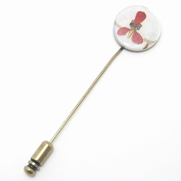 やわらかく独特な貝の輝きに、アワビ貝の瞳を持つ雄鶏が、ドラマティックなムードの美しいラペルピン(ラペルブローチ)です。