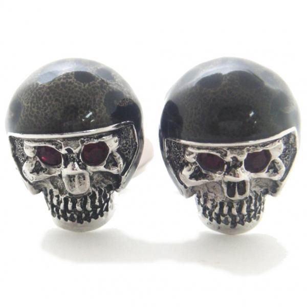 【JanLeslie】モーターサイクル・ヘルメット・スカルのカフス(カフリンクス/カフスボタン)