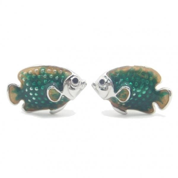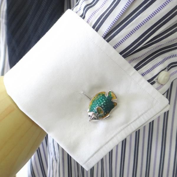 【JanLeslie】ヴィヴィッドグリーンが輝く熱帯魚のカフス(カフリンクス/カフスボタン)