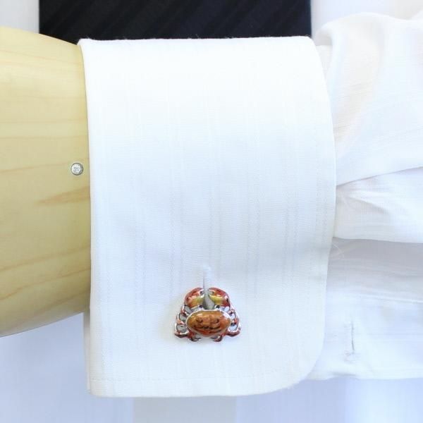 【JanLeslie】シルバー・オレンジグラデーション・蟹のカフス(カフリンクス/カフスボタン)