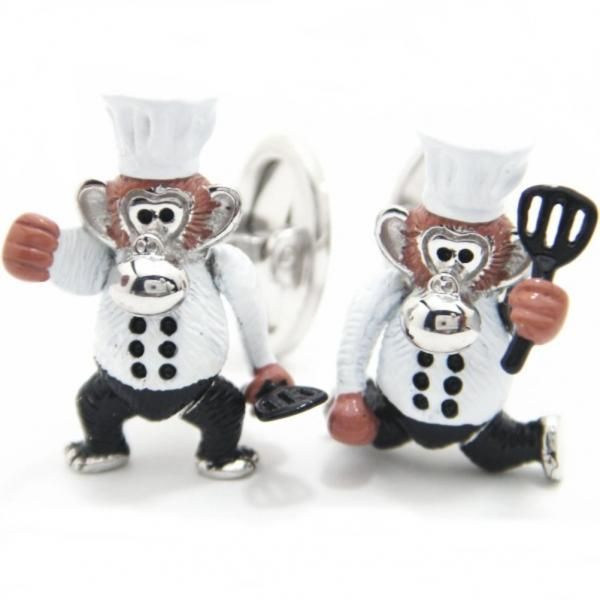 【JanLeslie】手足が動くグルメシェフモンキーのカフス(カフリンクス/カフスボタン)