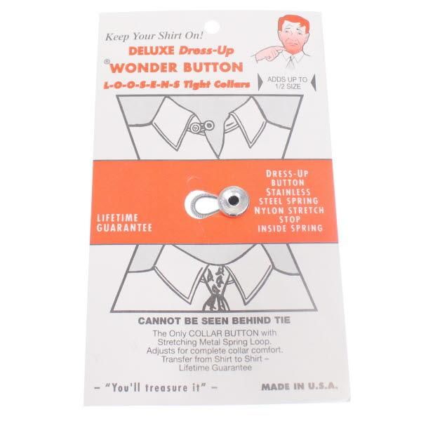 ボタンにゴムを引っ掛けて留めるだけで、約1㎝分隙間ができるので、若干首元がゆるくなる便利アイテムが新登場!!