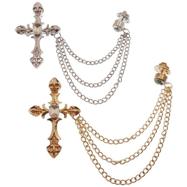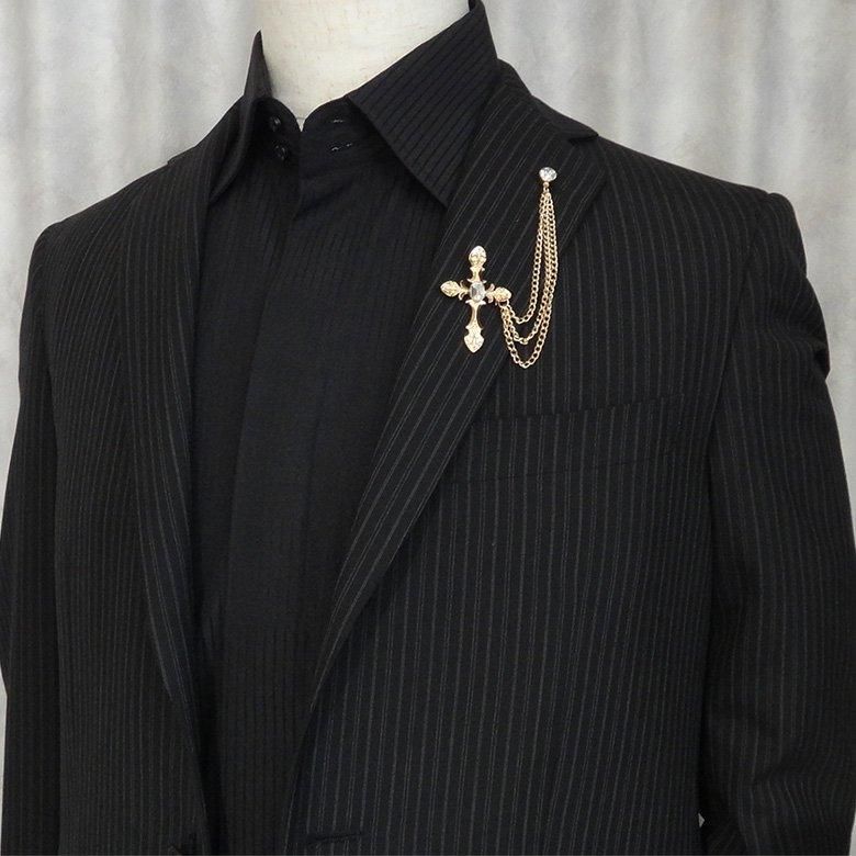 全2色 シルバー ゴールド ラペルピン キラっと十字架 ラペルブローチ