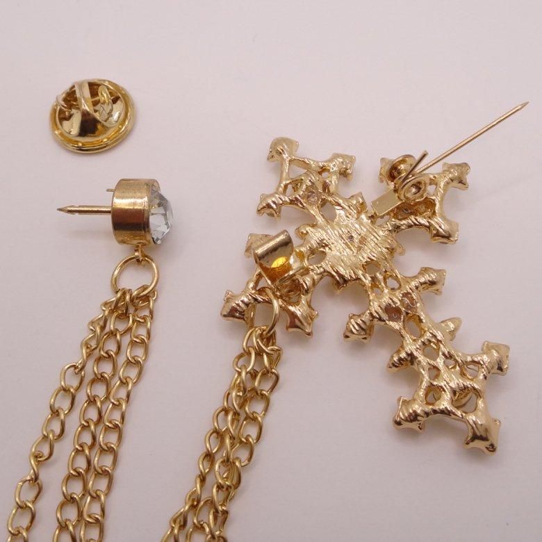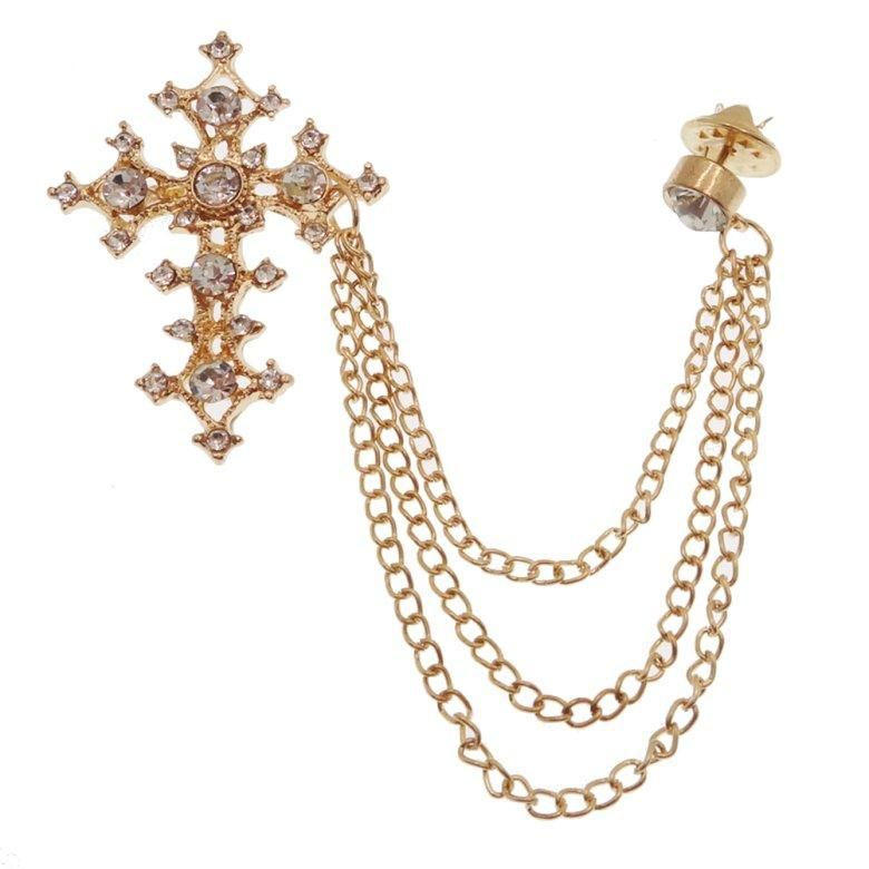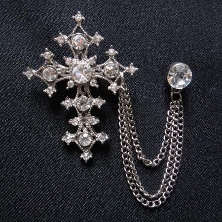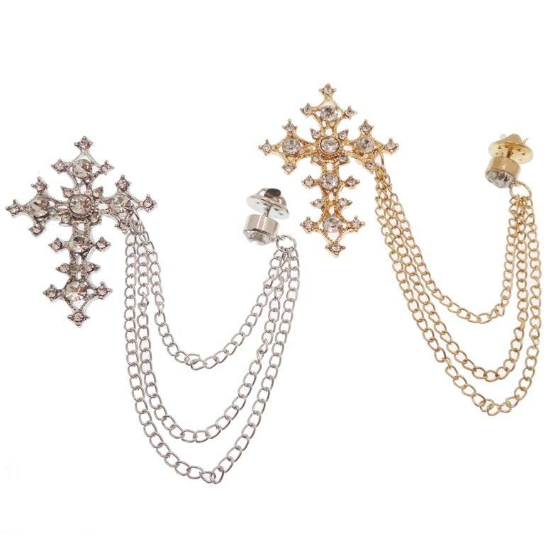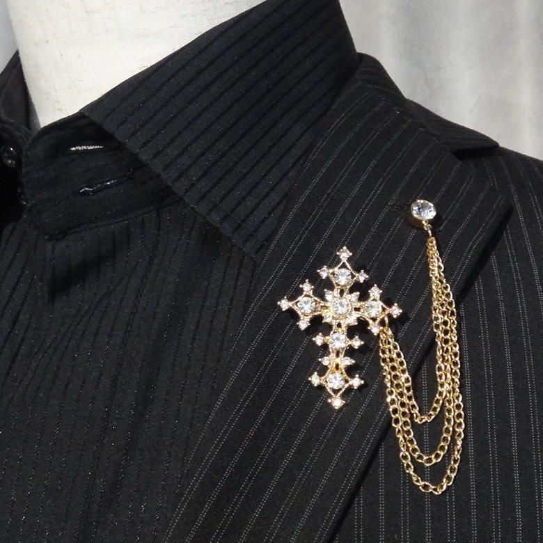 全2色 ラペルピン ゴージャス クロス ラペルブローチ