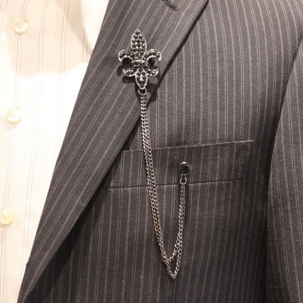 フルールドリス・ブラックストーン・チェーンラペルピン・ブローチ