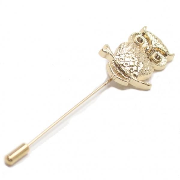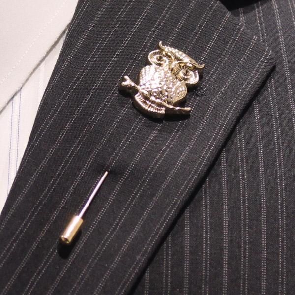 キョトンとキュートなふくろう・ゴールドのラペルピン(ピンブローチ)