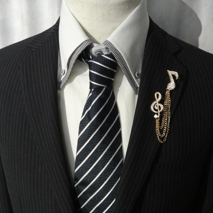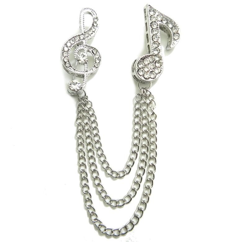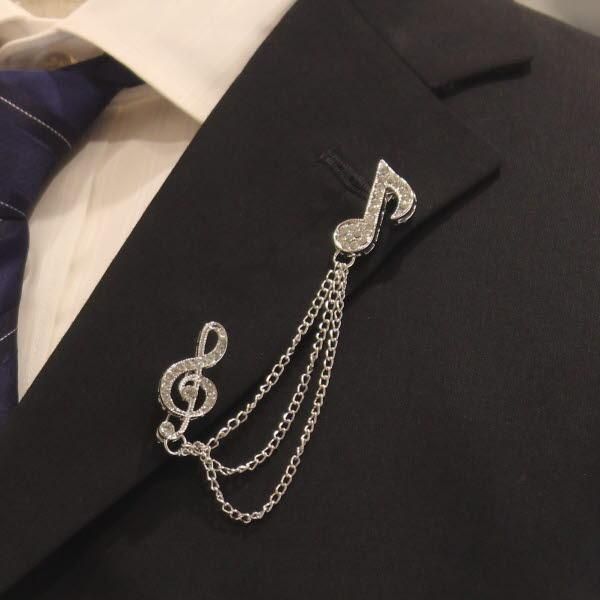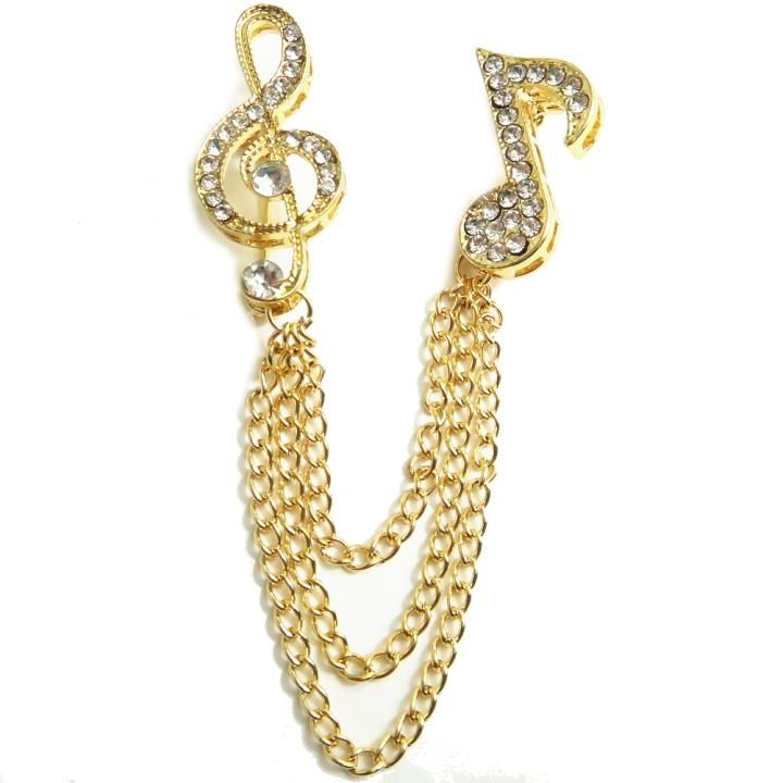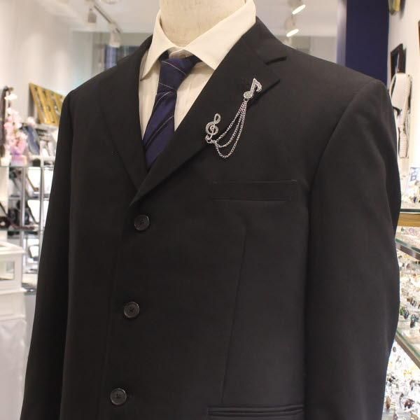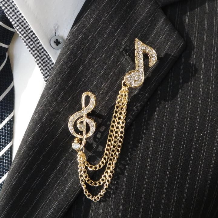 全2色 ト音記号 音符 きらきらストーン チェーン ラペルピン ブローチ