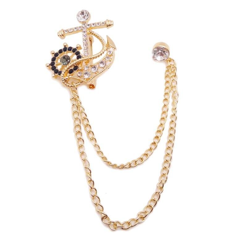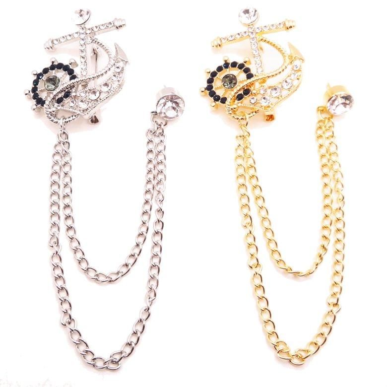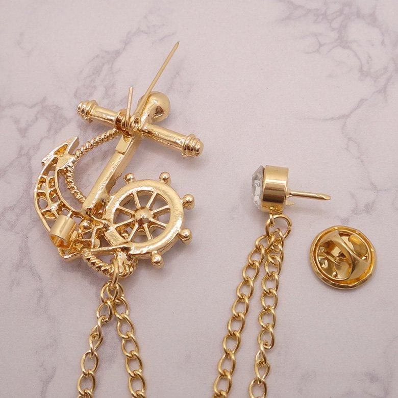 全2色 舵 イカリ 碇 錨 マリンテイスト 海の男 モチーフ ゴールド シルバー チェーン ラペルピン ブローチ