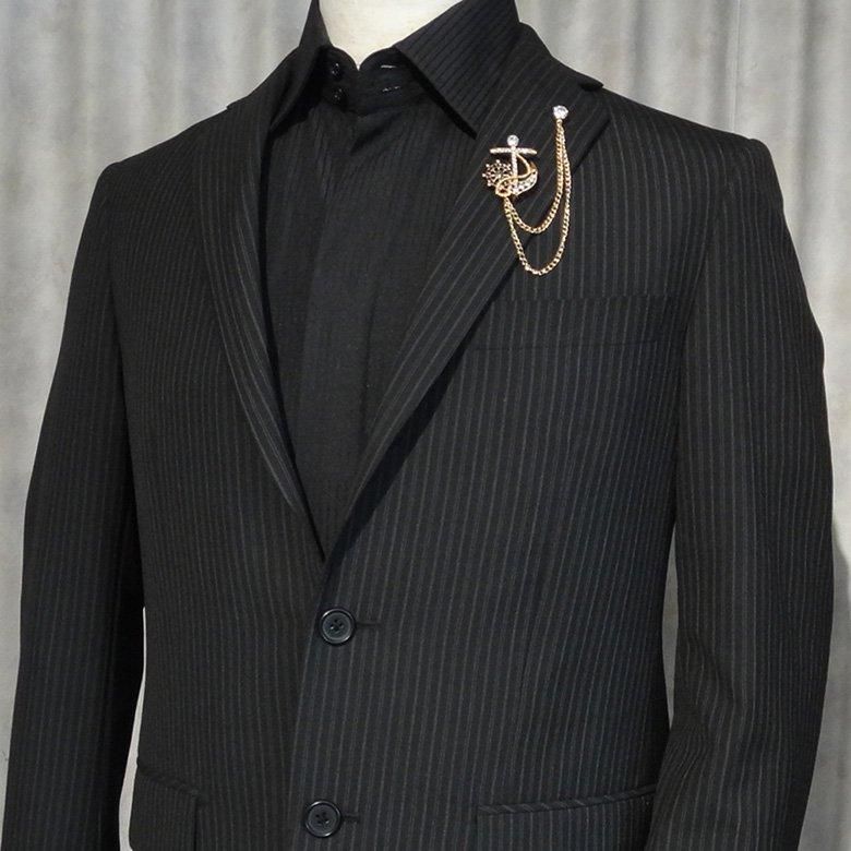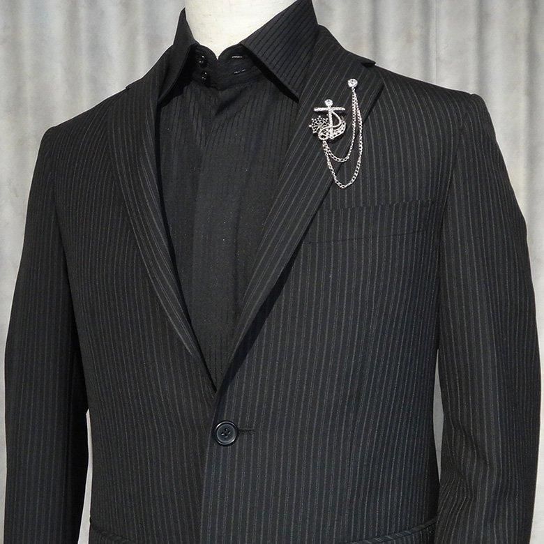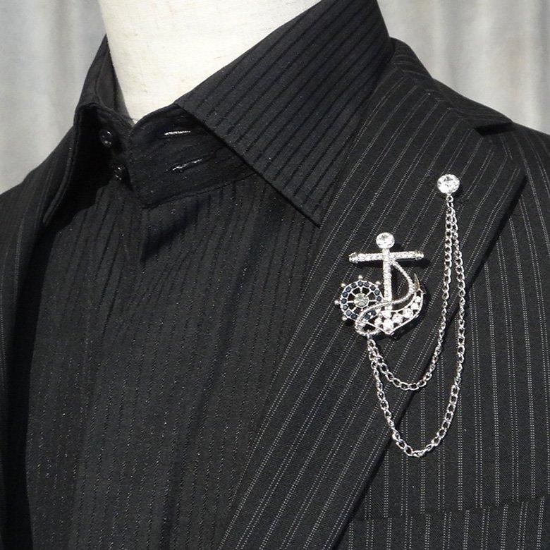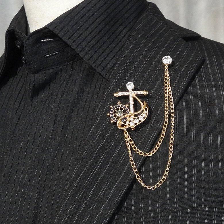 海の男を感じさせる舵とイカリモチーフのラペルピン