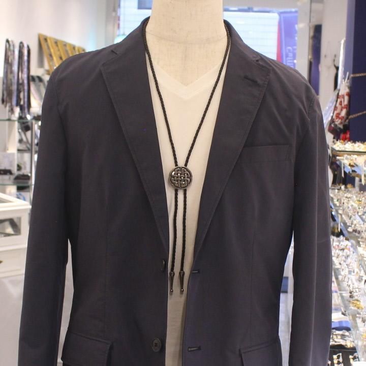 シャツのネクタイ代わりとして、またネックレスのようにしてご使用いただけるお洒落なループタイ。