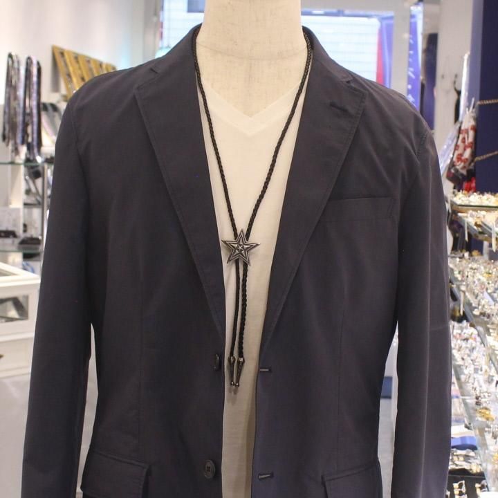 シャツのネクタイ代わりとして、またネックレスのようにしてご使用いただけるお洒落なループタイ。