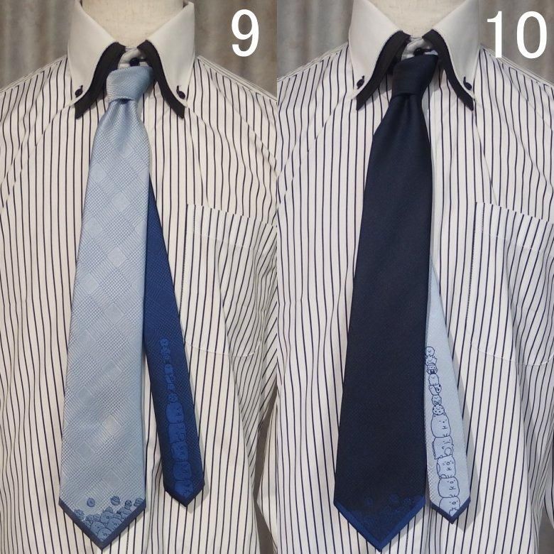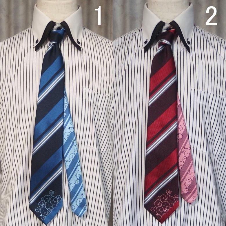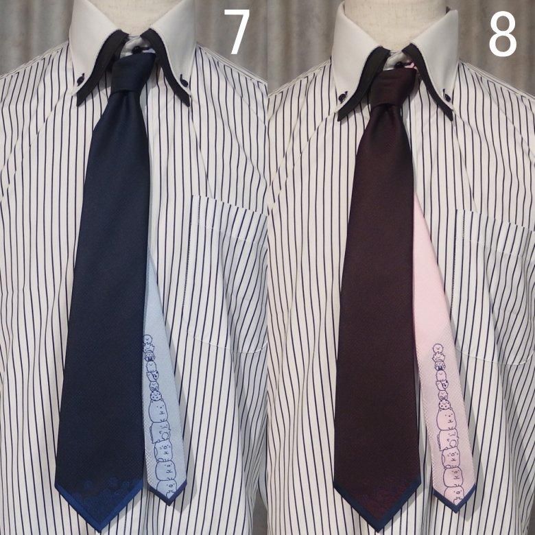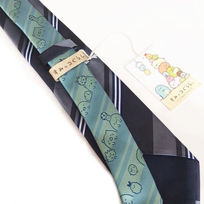 シンプルなレジメンタルストライプのネクタイと思わせて剣先にすみっコぐらしキャラがいたり、
