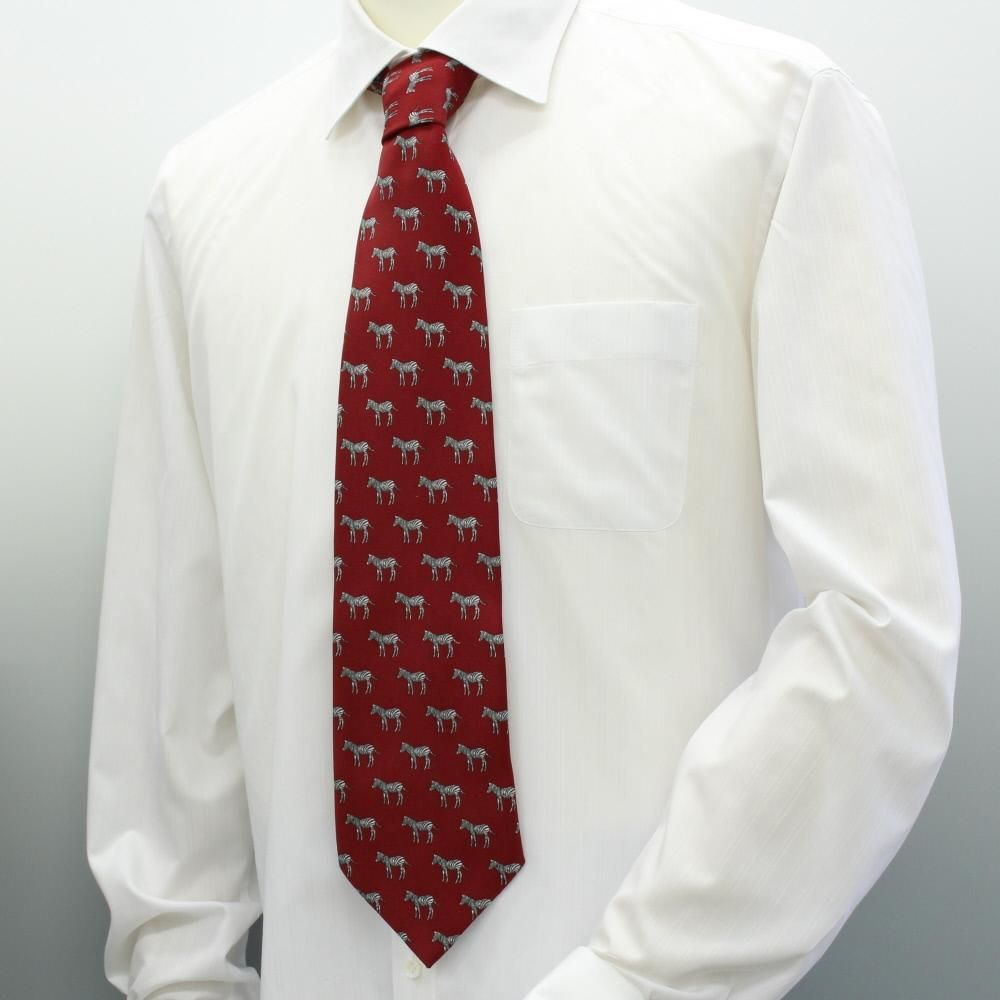 面白ネクタイ・しまうまいっぱいゼブラ柄・レッドのユニークネクタイ