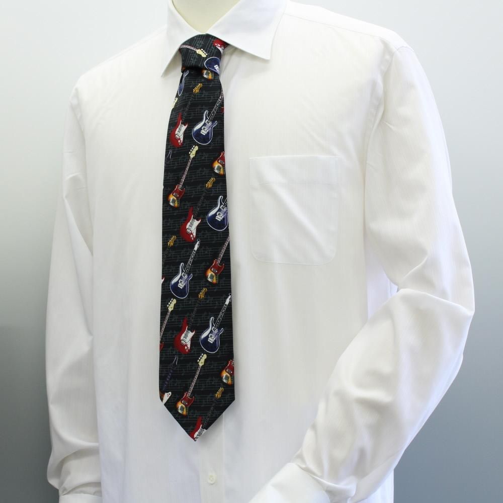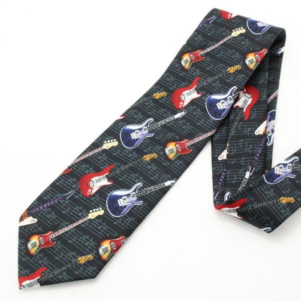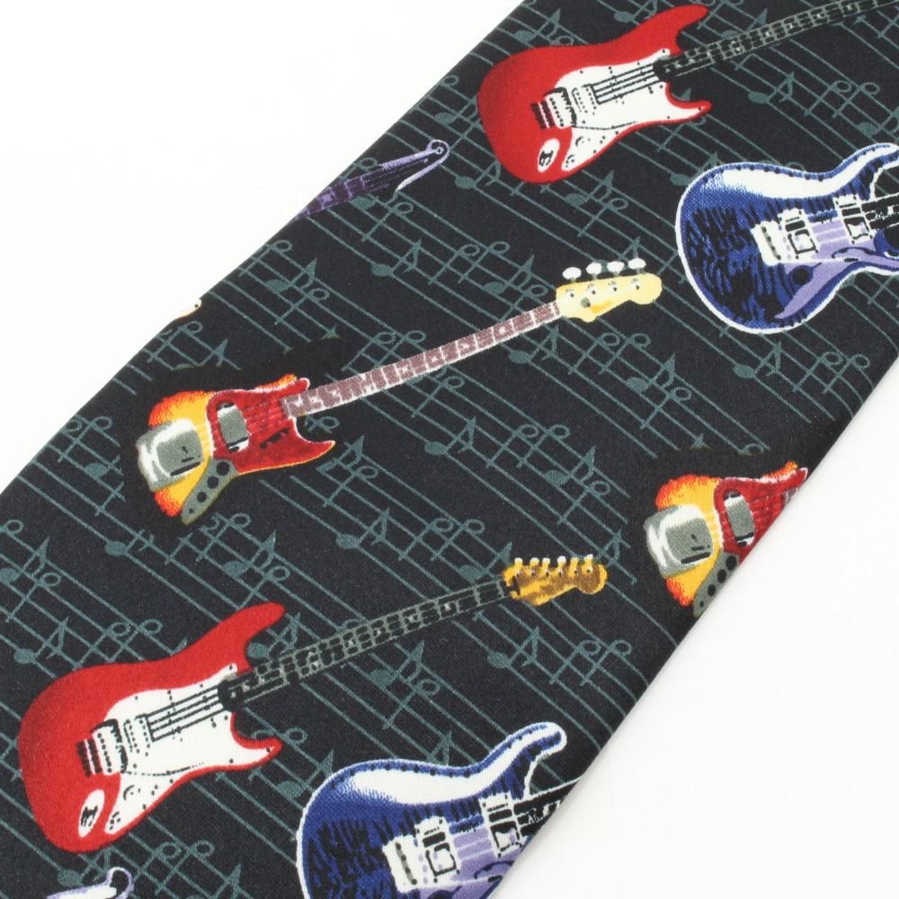 面白ネクタイ・音譜とカラフル・エレキギター柄のユニークネクタイ