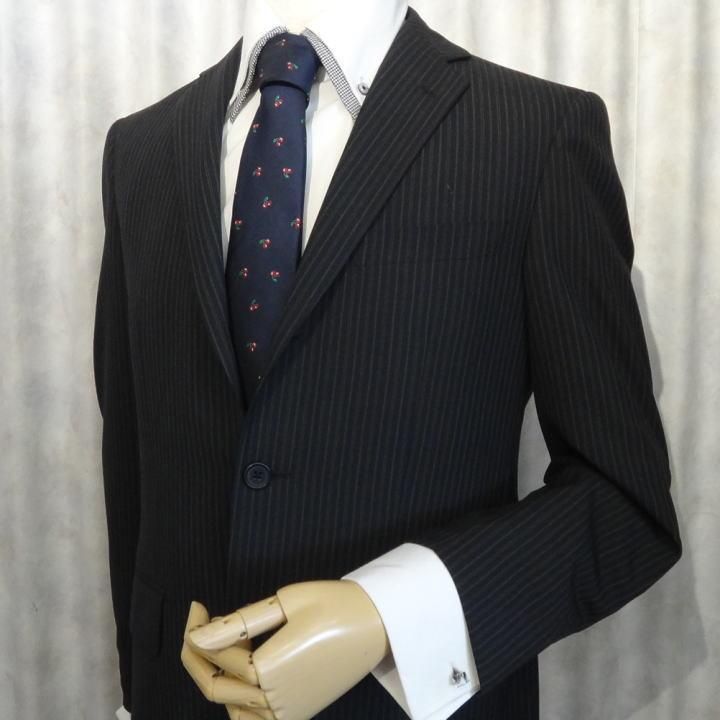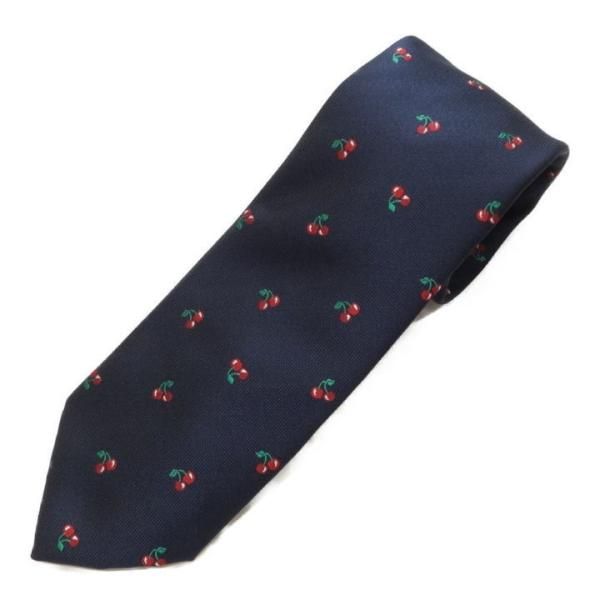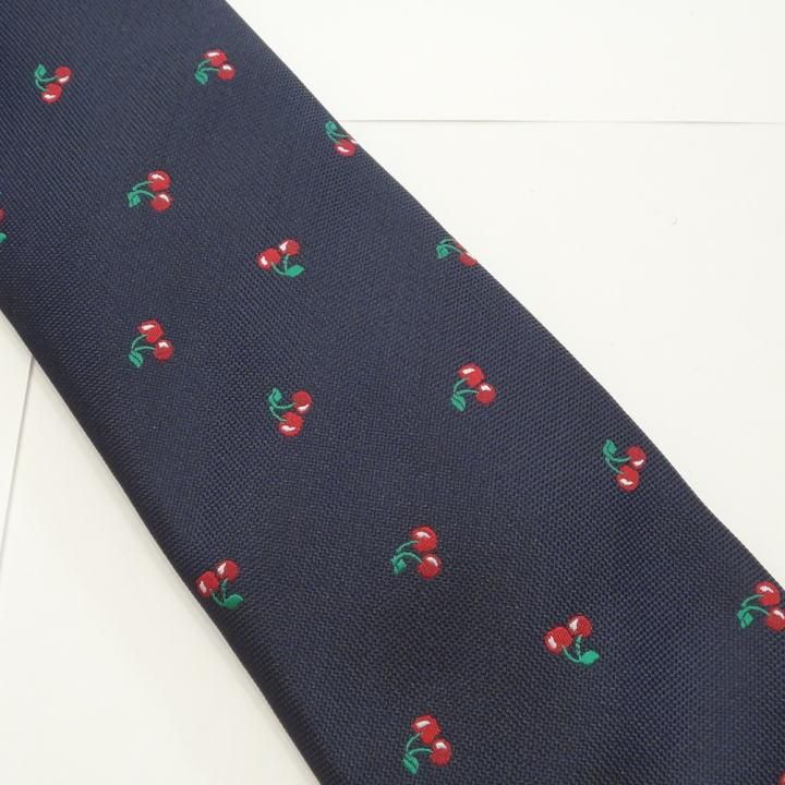紺地のネクタイに小さなさくらんぼが散りばめられたデザイン。