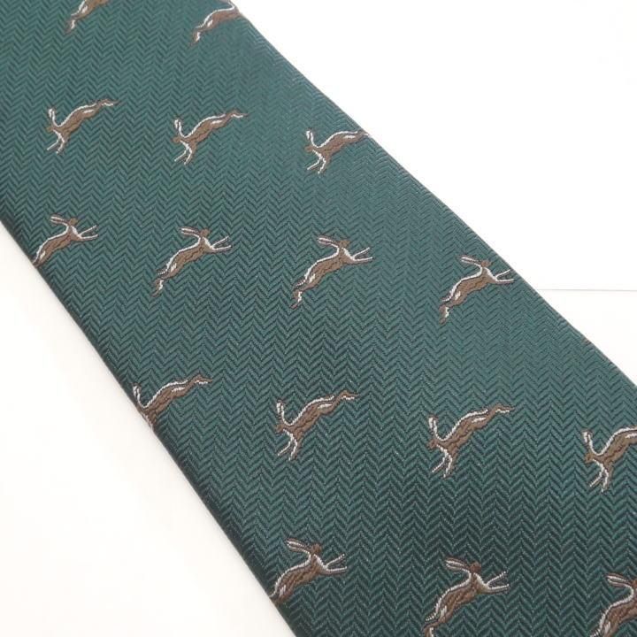 緑地のネクタイなので、まるで草原を茶うさぎが飛び回っているよう。