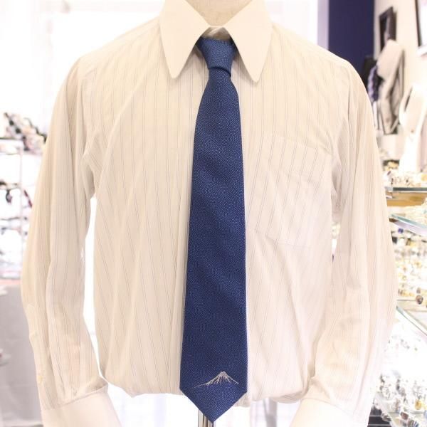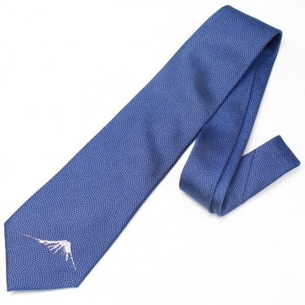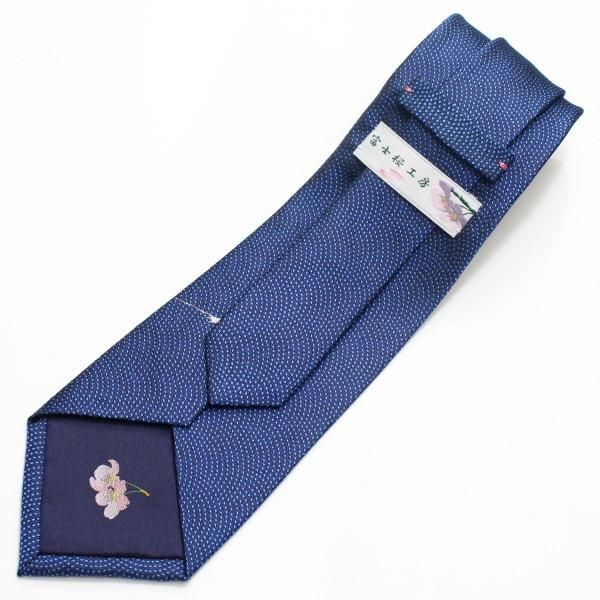 【富士桜工房】冬夜 紺色・鮫小紋に富士山の刺繍・日本製シルクジャカードの和風ネクタイ