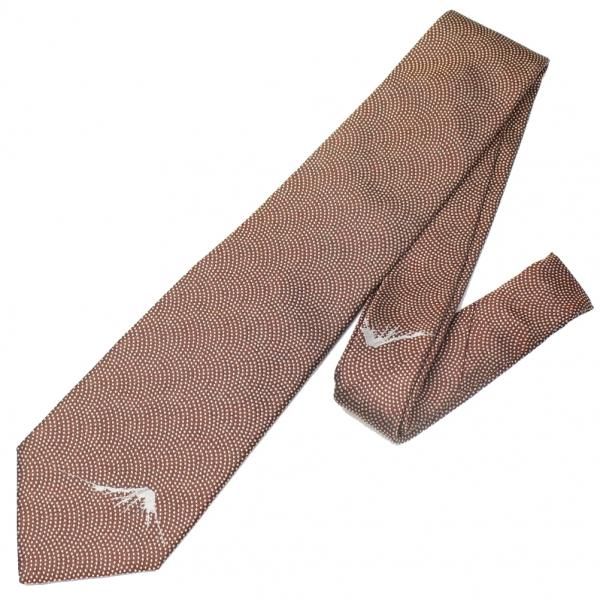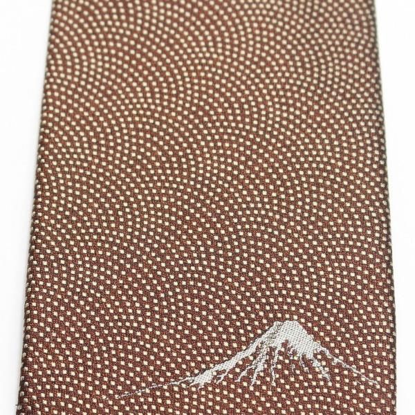 【富士桜工房】柿渋色・鮫小紋に富士山の刺繍・日本製シルクジャカードの和風ネクタイ