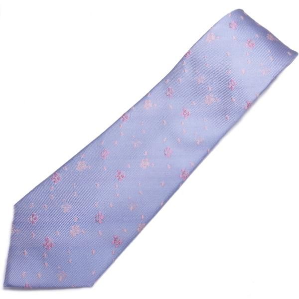 【富士桜工房】水色・桜吹雪・日本製シルクジャカードの和風ネクタイ