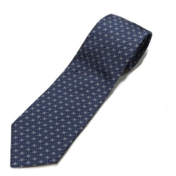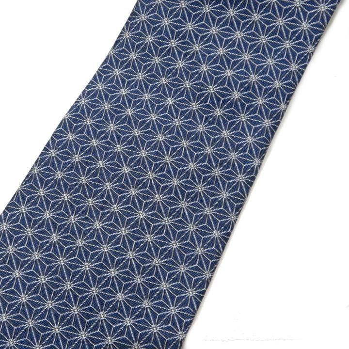 【富士桜工房】麻の葉 藍色 伝統紋柄 日本製シルクジャカードの和風ネクタイ