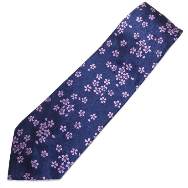 【富士桜工房】紺・桜花・日本製シルクジャカードの和風ネクタイ
