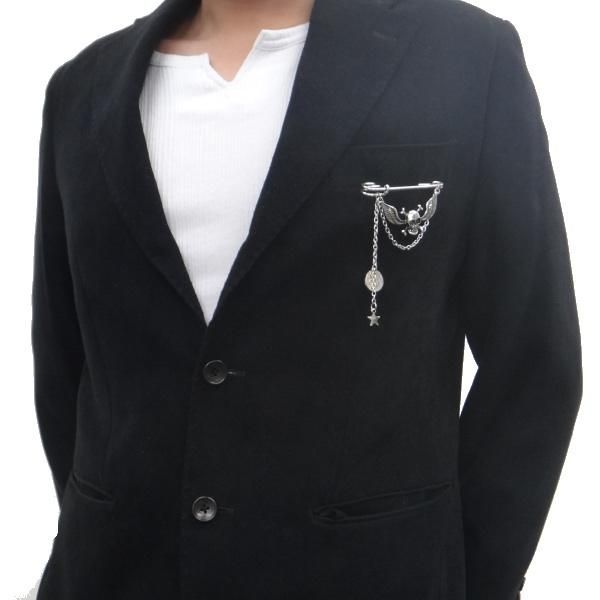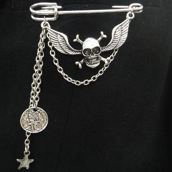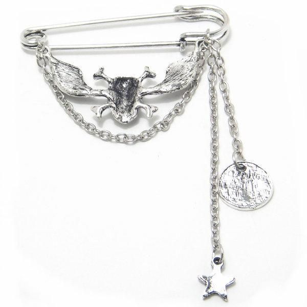 ラペルピン・ウィング・スカルとコインの安全ピンブローチ(ラペルブローチ)