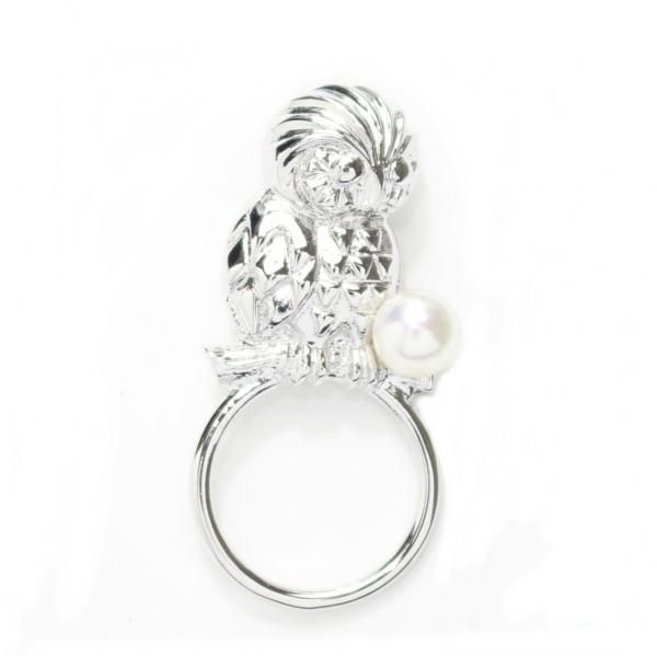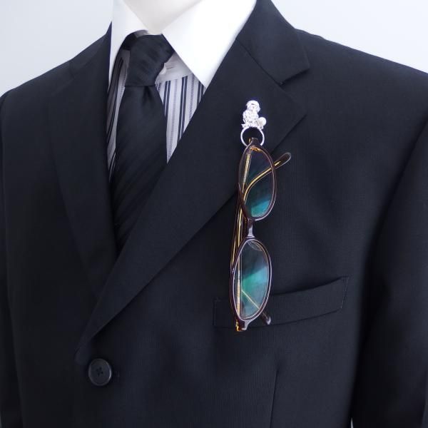 ふくろう・アコヤ真珠パール6.0mmのラペルピン型眼鏡掛け・眼鏡ホルダー
