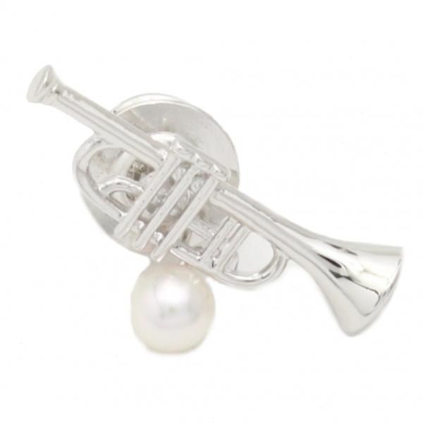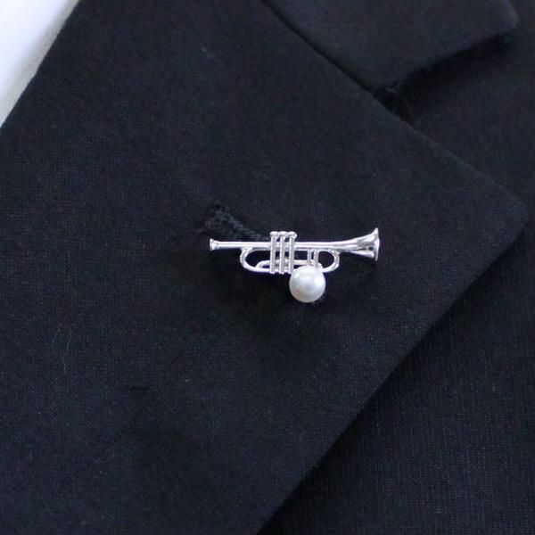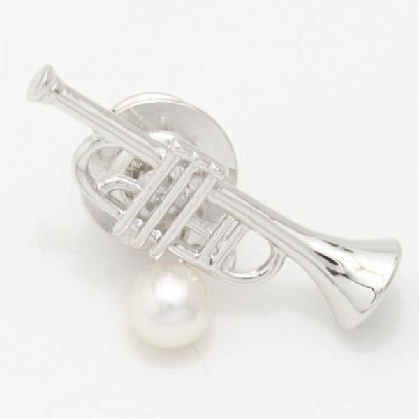 ラペルピン・音楽好きさんにトランペット・アコヤ真珠パール5.0mmブローチ(タイタック)