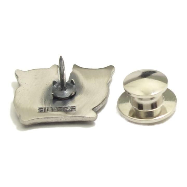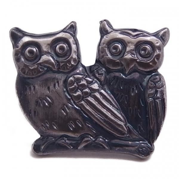 2匹のフクロウが並んだシルバーのピンブローチです。