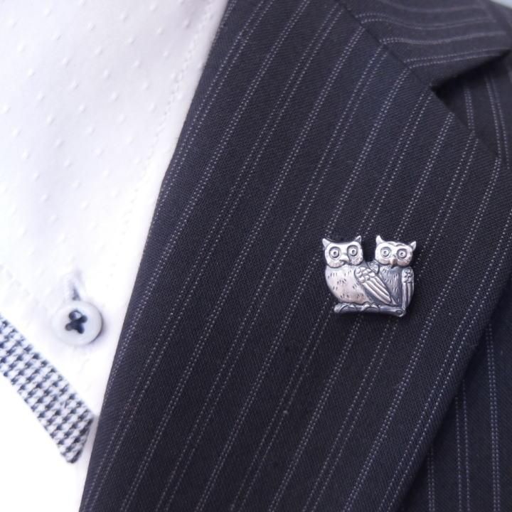 仲良しペア 2羽 ふくろう フクロウ 梟 アンティーク調 ラペルピン 可愛い ブローチ