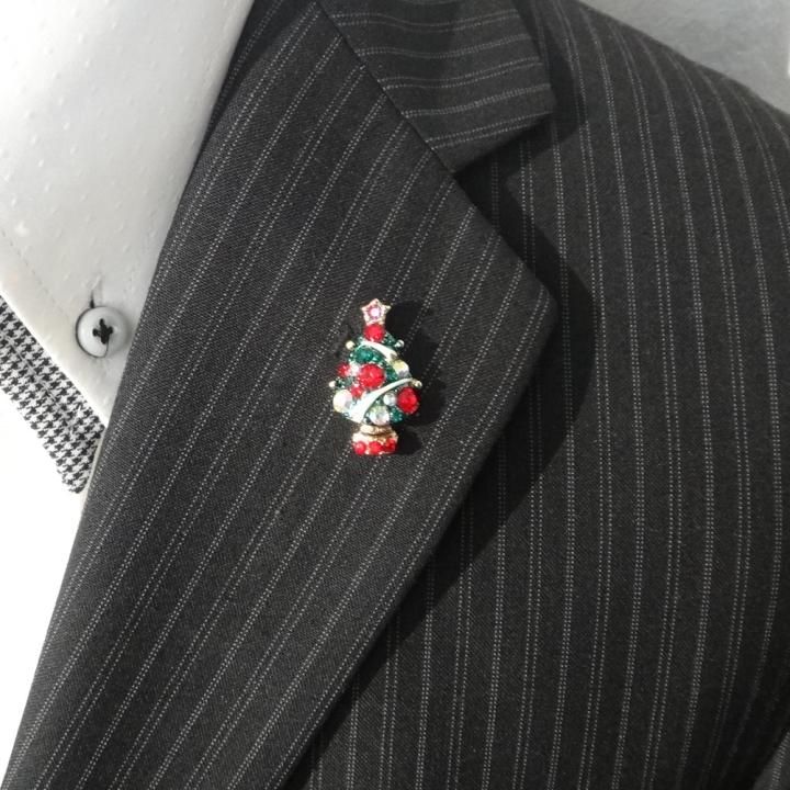 トップにキラリと輝く星飾りのついた、クリスマスツリーモチーフのブローチ・ラペルピン。