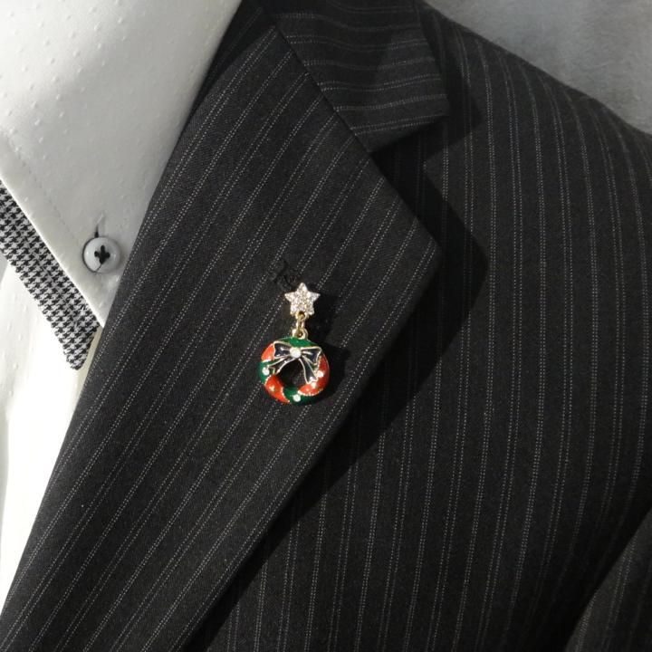 クリスマスリース Xmas クリスマス リース ゴールドカラー ラペルピン ピンブローチ ブローチ