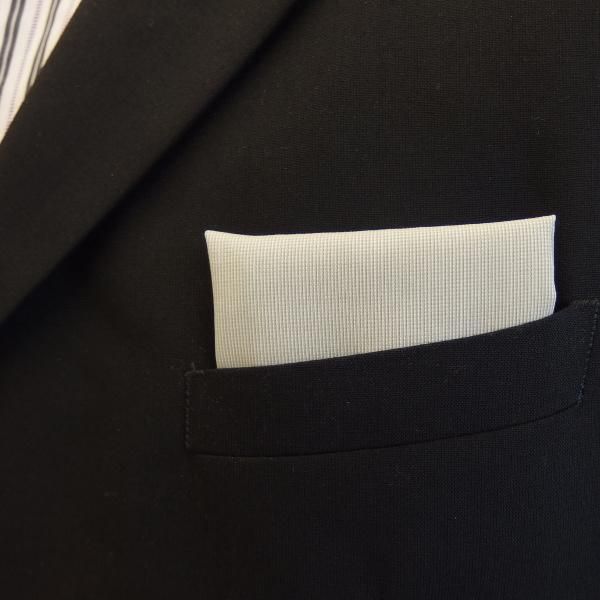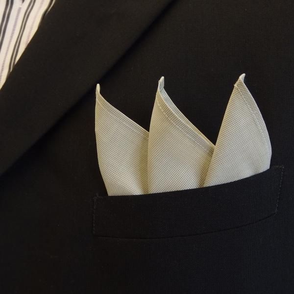 高級オーダーシャツ生地ポケットチーフ・若草色×白平織のポケットスクウェア