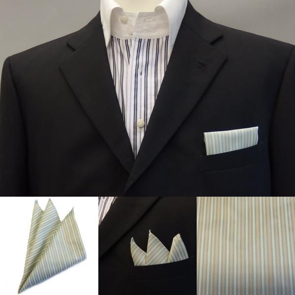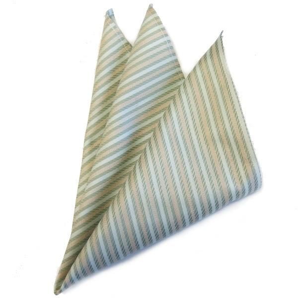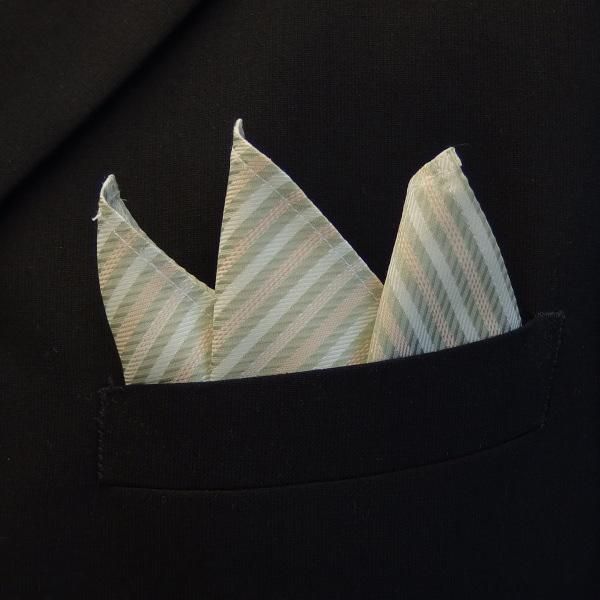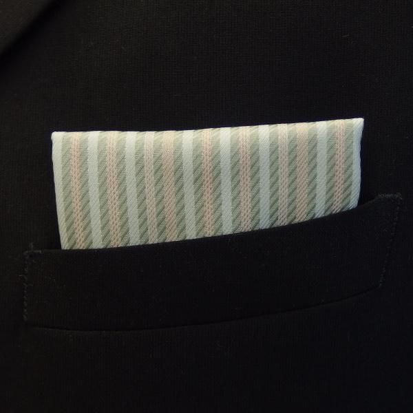 高級オーダーシャツ生地ポケットチーフ・若葉色×ベージュストライプのポケットスクウェア