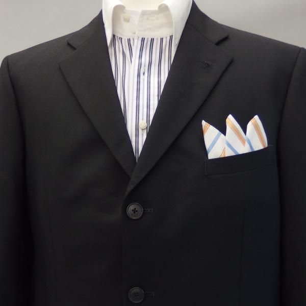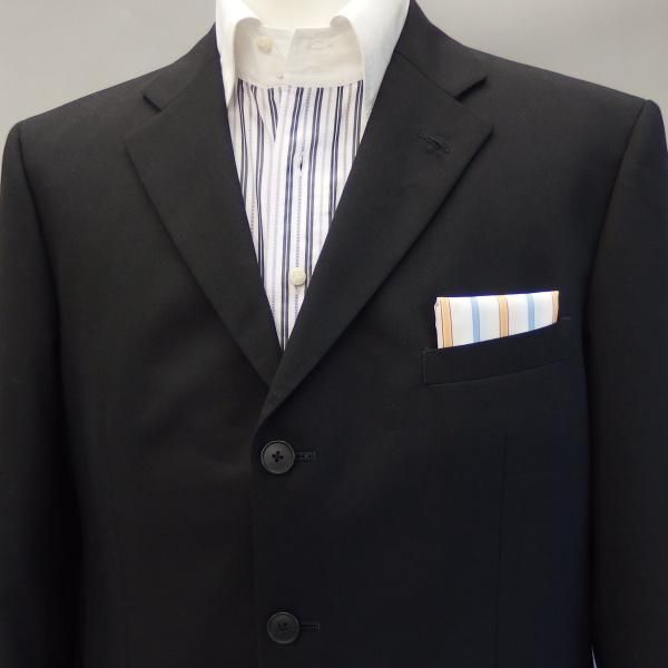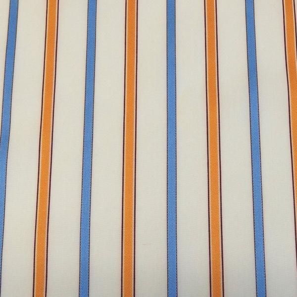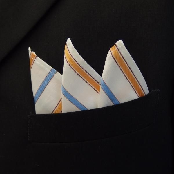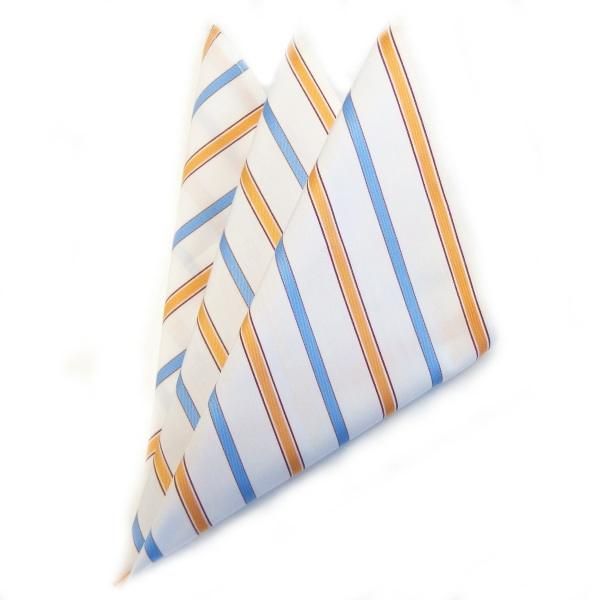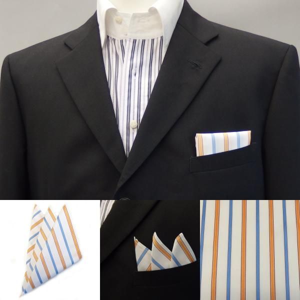 高級オーダーシャツ生地ポケットチーフ・ブルー×オレンジストライプのポケットスクウェア