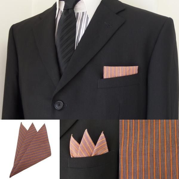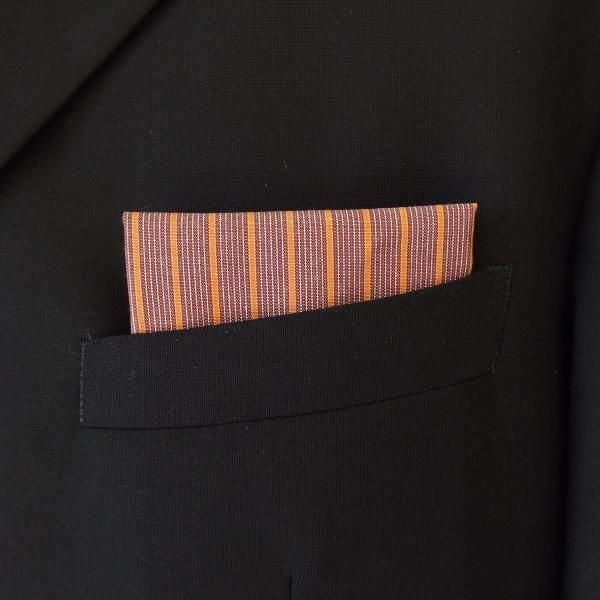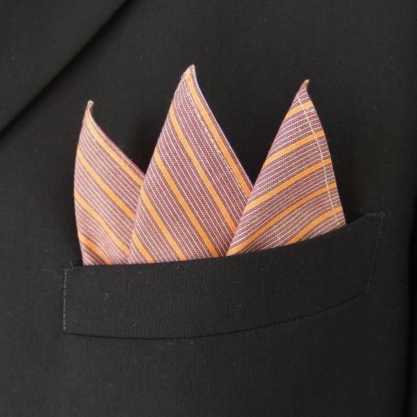 高級オーダーシャツ生地ポケットチーフ・オレンジ×ブラウンストライプ柄ポケットスクウェア