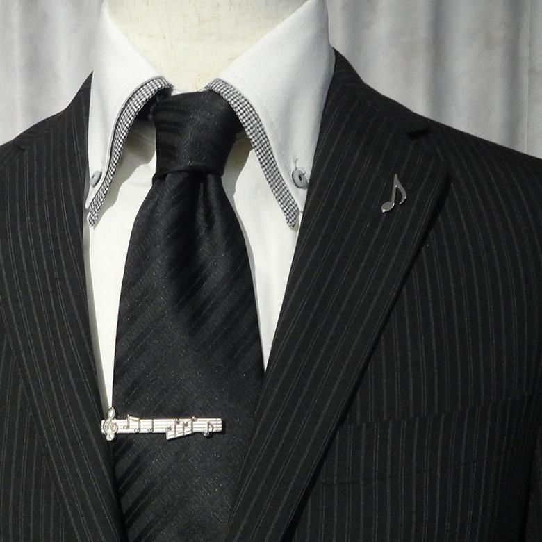 艶やかなシルバーで八分音符とト音記号をモチーフにした、可愛らしくユーモラスなラペルピン。