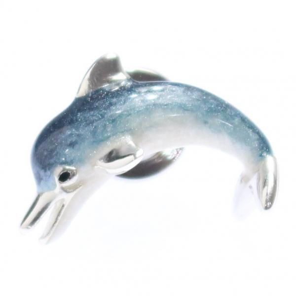 水面からジャンプしたところのような、躍動感あるキュートなイルカのタイタック。