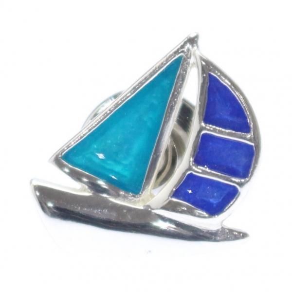 程よい立体感と丸みのある可愛らしいデザインのヨットのタイタック。