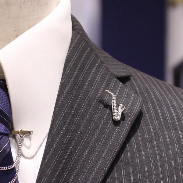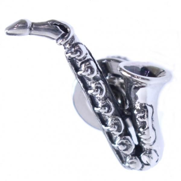 シルバーのサックスのタイタック。
