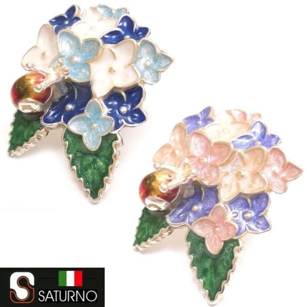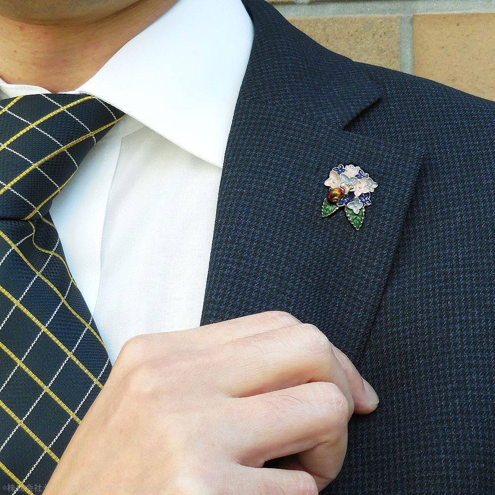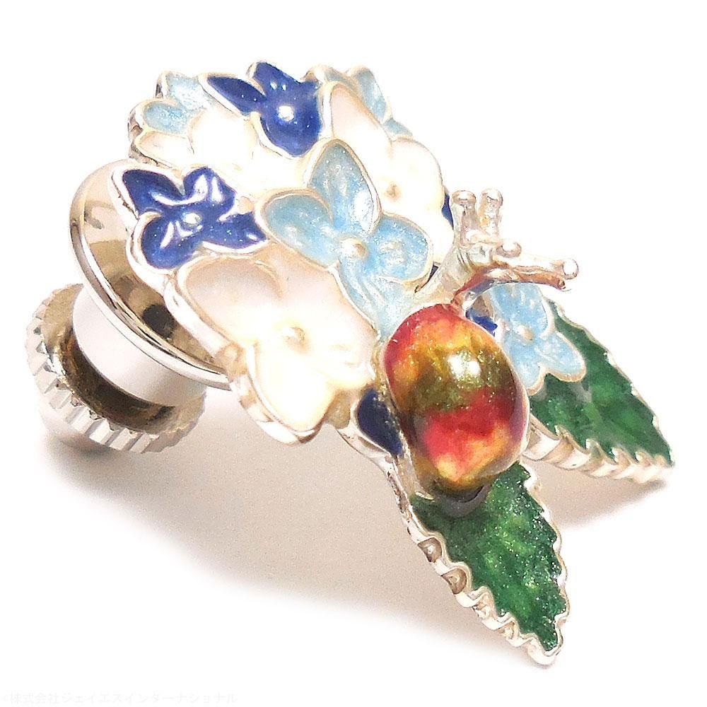 【SATURNO・サツルノ】全2色 ラペルピン 紫陽花とかたつむり タイタック(ピンブローチ)