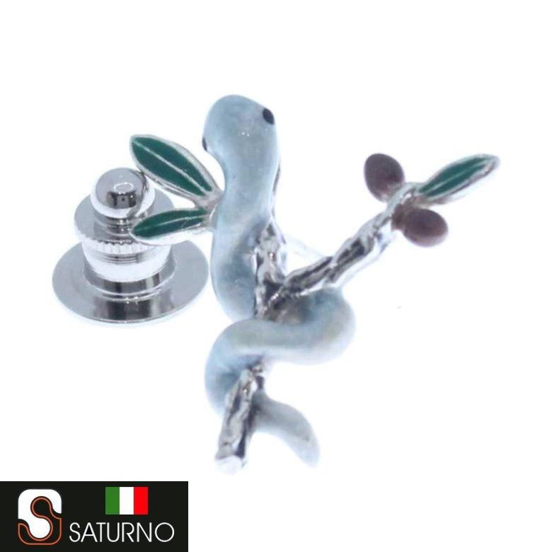 SATURNO サツルノ ラペルピン 蛇 へび ヘビ 巳年 オリーブの木 水色 イタリア製 サツルノ ピンブローチ シルバー925