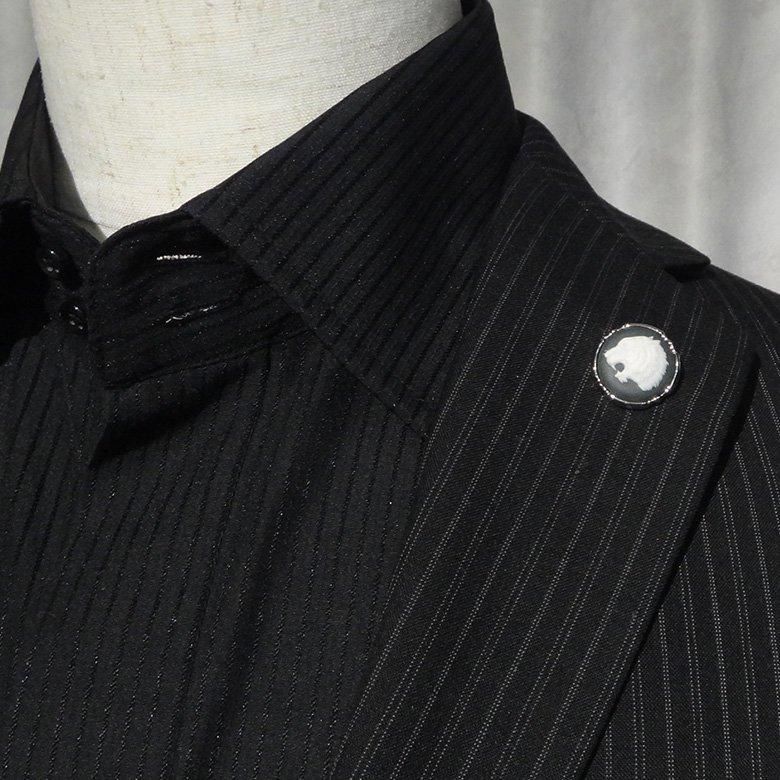 【陶華・TOHCA】シルバー ラウンド 吠える虎 カメオ グレー タイタック ピンブローチ ラペルピン