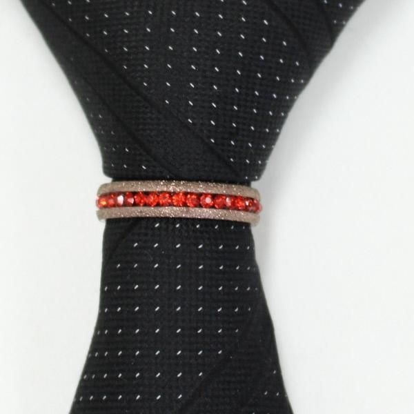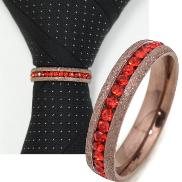 ネクタイリング・ラメブロンズゴールド×レッドストーンのゴージャスなタイリング(スカーフ留)